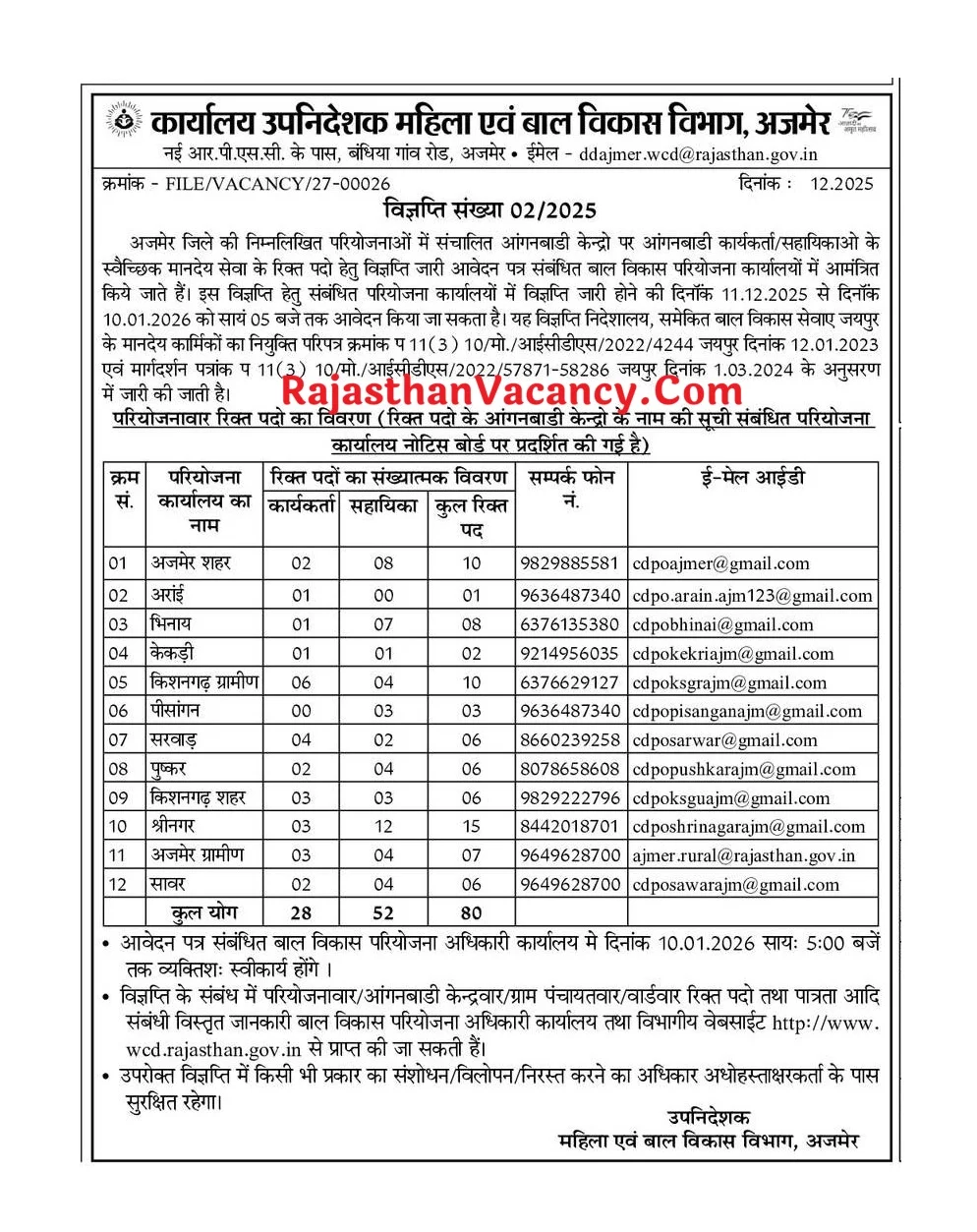 | Rajasthan Anganwadi Recruitment 2026 Last Date | प्रत्येक जिले वाइज अलग-अलग |